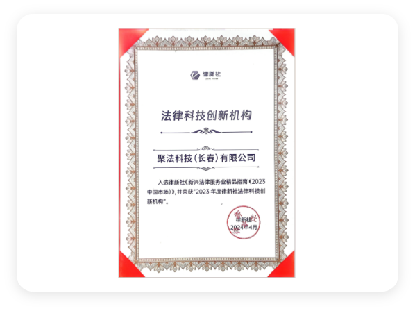 聚法科技(長春)有限公司,是一家基于法律大數(shù)據(jù)、人工智能的解決方案提供商。依托吉林大學司法數(shù)據(jù)應(yīng)用研究中心,形成產(chǎn)學研一體化的結(jié)構(gòu)。聚法科技獲得榮譽包括:“高新技術(shù)企業(yè)”“科技小巨人企業(yè)”稱號;中國軟件行業(yè)最高信用“AAA”級評定;經(jīng)商務(wù)部國際貿(mào)易經(jīng)濟合作研究院信用評級與認證中心評定,成為“信用認證企業(yè)”;中央電視臺《信用中國》欄目組合作伙伴;吉林省軟件常務(wù)理事;擁有近50余項自主知識產(chǎn)權(quán)。