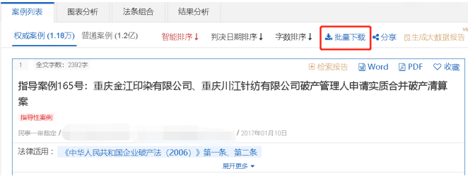 聚法案例為注冊的用戶提供批量下載功能。點(diǎn)擊【批量下載】,即可同時(shí)下載多篇案例。