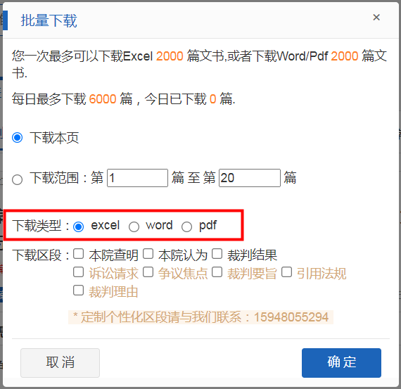 用戶在批量下載案例時(shí),可自行選擇下載范圍及下載形式。