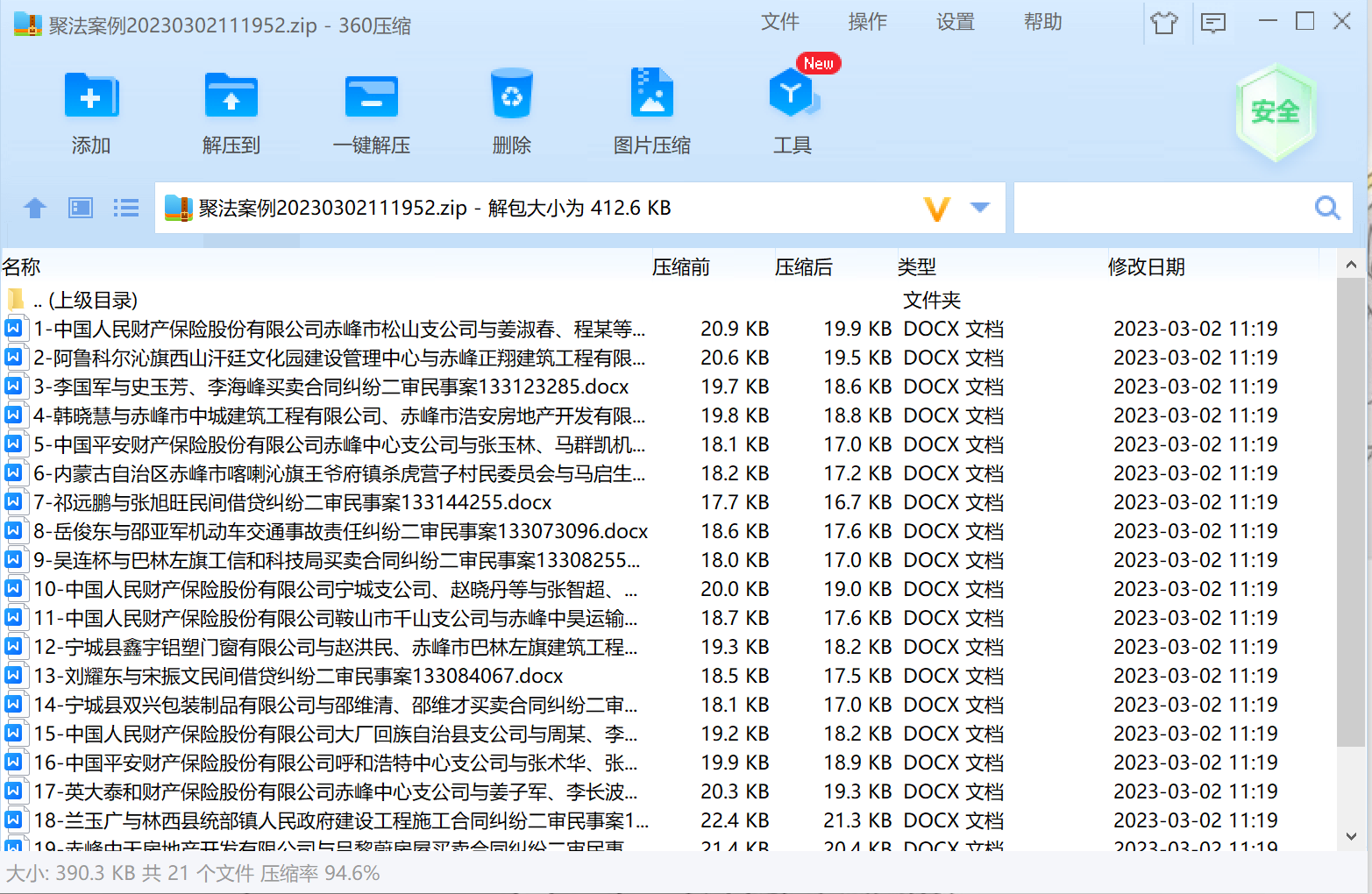 當(dāng)下載類型選擇word或pdf時(shí),所有文書會以壓縮包的形式下載,解壓縮后,即可瀏覽文書。