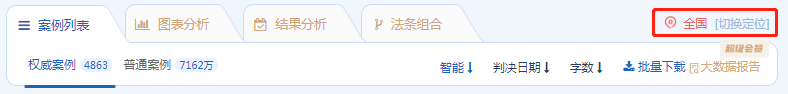 因地域差異,本省案例相比外省案例更具有參考價(jià)值。用戶在聚法案例檢索結(jié)果頁,選擇位置后,普通案例列表會根據(jù)所選位置優(yōu)先推送本地案例。