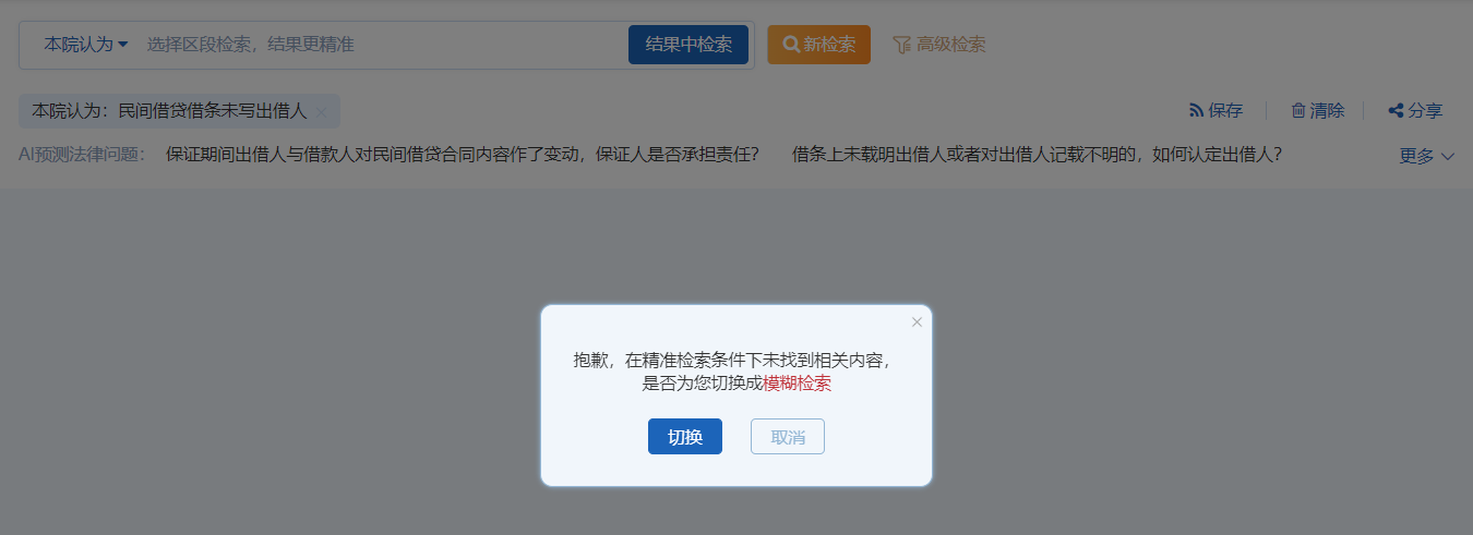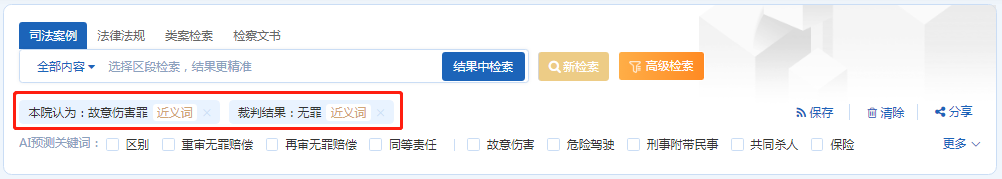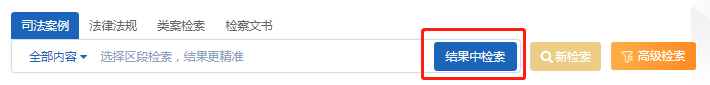 用戶在已經(jīng)確定部分檢索條件后,在現(xiàn)有檢索結(jié)果中需要進(jìn)一步篩選出目標(biāo)案例時(shí),就需要在結(jié)果中檢索的功能。該功能可在已檢索到的內(nèi)容中篩選出更為精準(zhǔn)的信息。