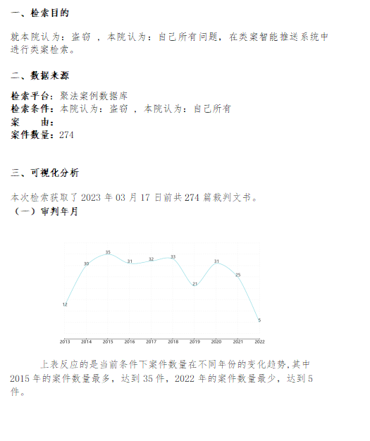 用戶在確定檢索條件后,在案例檢索結(jié)果頁點(diǎn)擊【生成大數(shù)據(jù)報(bào)告】可快速生成行業(yè)分析數(shù)據(jù)報(bào)告,報(bào)告包含檢索目的、數(shù)據(jù)來源、可視化分析和引用法規(guī)附錄。