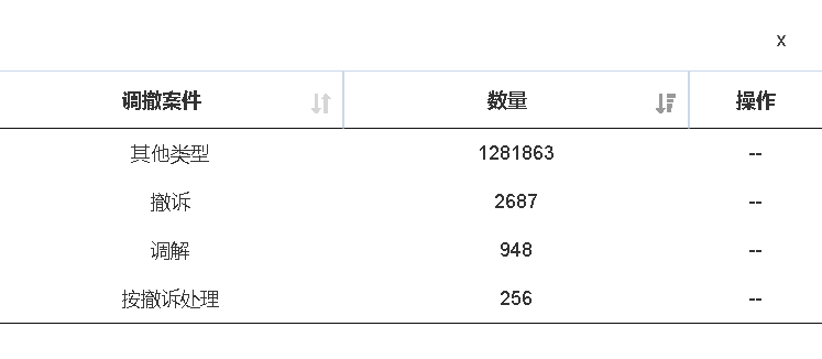 點(diǎn)擊【詳細(xì)數(shù)據(jù)】,可以查看全部裁判結(jié)果及對應(yīng)的案件數(shù)量,如下圖: