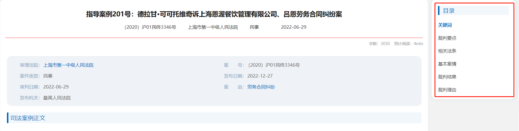 用戶打開案例詳情頁后,可根據(jù)案例目錄快速了解案例結(jié)構(gòu),將鼠標(biāo)懸停在【目錄】處,系統(tǒng)會展示本篇案例目錄,點(diǎn)擊具體區(qū)段名稱直接跳轉(zhuǎn)到原文相應(yīng)位置。
