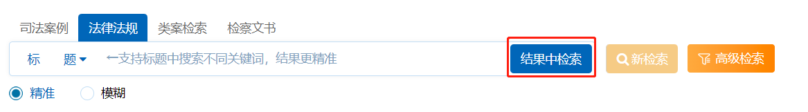 已經(jīng)確定部分檢索條件后,在現(xiàn)有檢索結(jié)果中需要進(jìn)一步篩選出目標(biāo)法規(guī)時(shí),就需要在結(jié)果中檢索的功能,點(diǎn)擊【結(jié)果中檢索】可在已檢索到的內(nèi)容中篩選出更為精準(zhǔn)的信息。