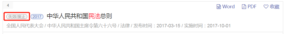 在法規(guī)檢索結(jié)果頁面和詳情頁面,展示了法規(guī)的時(shí)效性。方便用戶對法律法規(guī)時(shí)效性的把握。