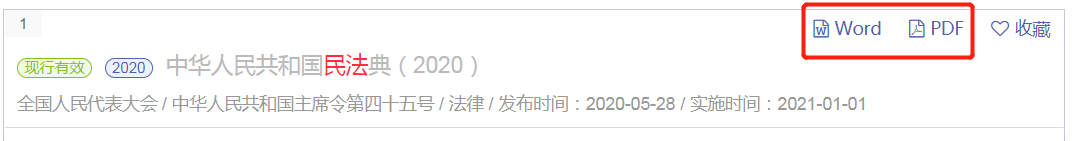 系統(tǒng)支持Word文檔和PDF文檔下載,用戶可在檢索結(jié)果頁直接下載,也可在法規(guī)詳情頁下載。