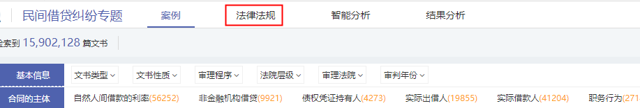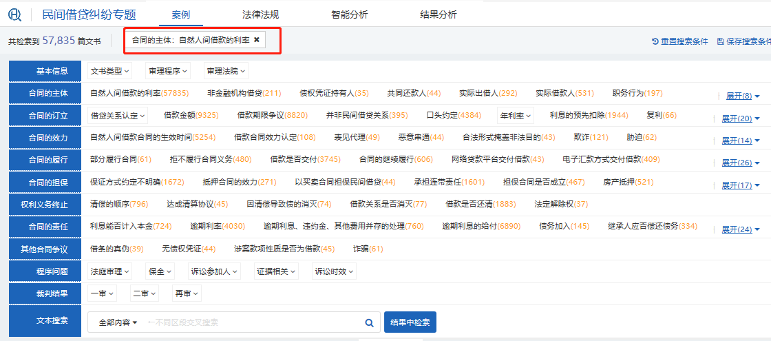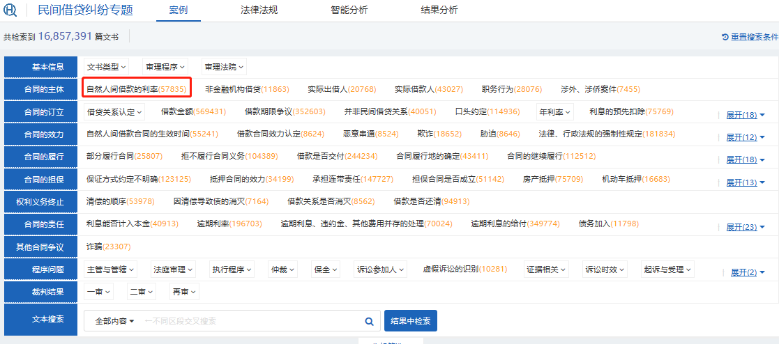以“自然人間借款的利率”為例,點(diǎn)擊按鈕進(jìn)行搜索,如下圖: