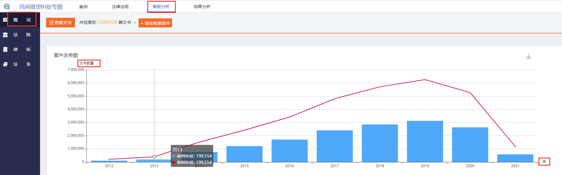 點(diǎn)擊“智能分析”,即可查看圖表分析式類案,將所有類案立體化展示。