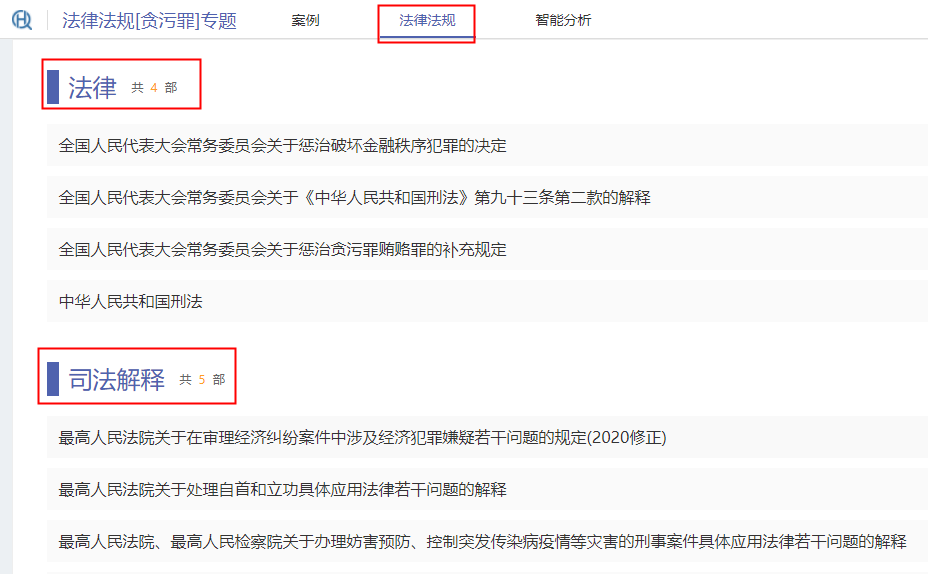 在子庫頁面上方點(diǎn)擊【法律法規(guī)】即可查看該案由的案件使用頻率最高的法律法規(guī),點(diǎn)擊法規(guī)標(biāo)題,即可查看法規(guī)的全部內(nèi)容。
